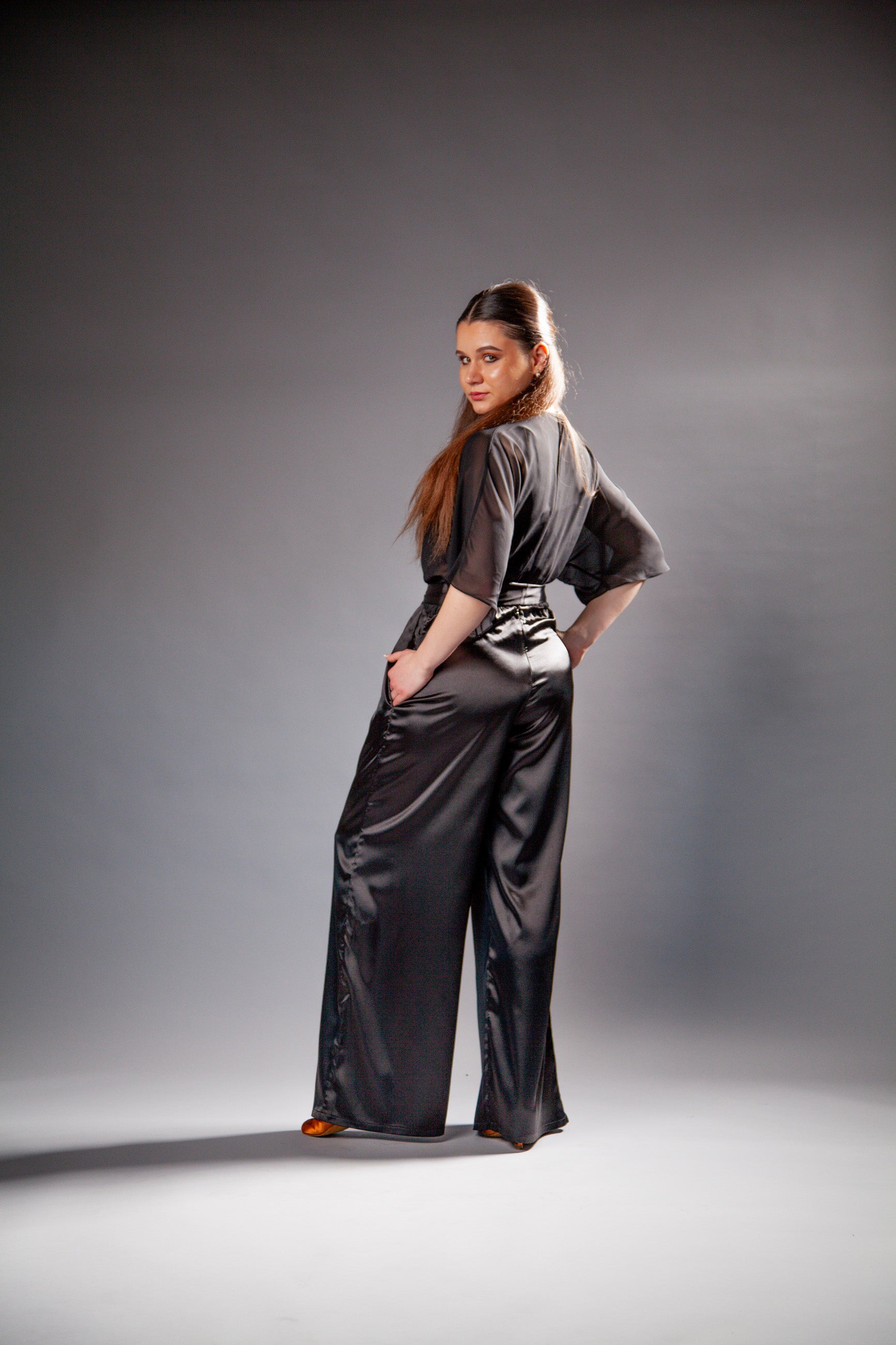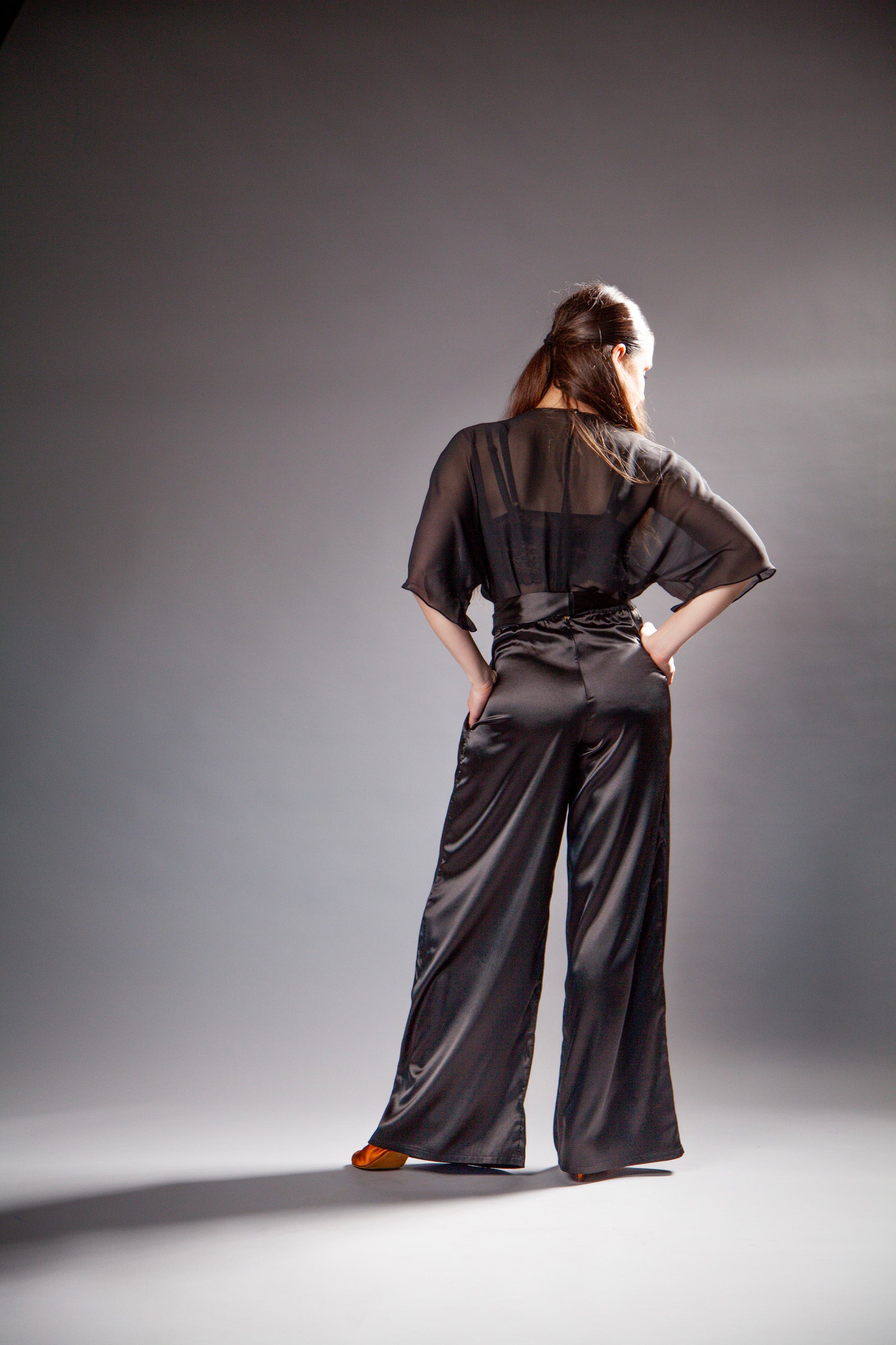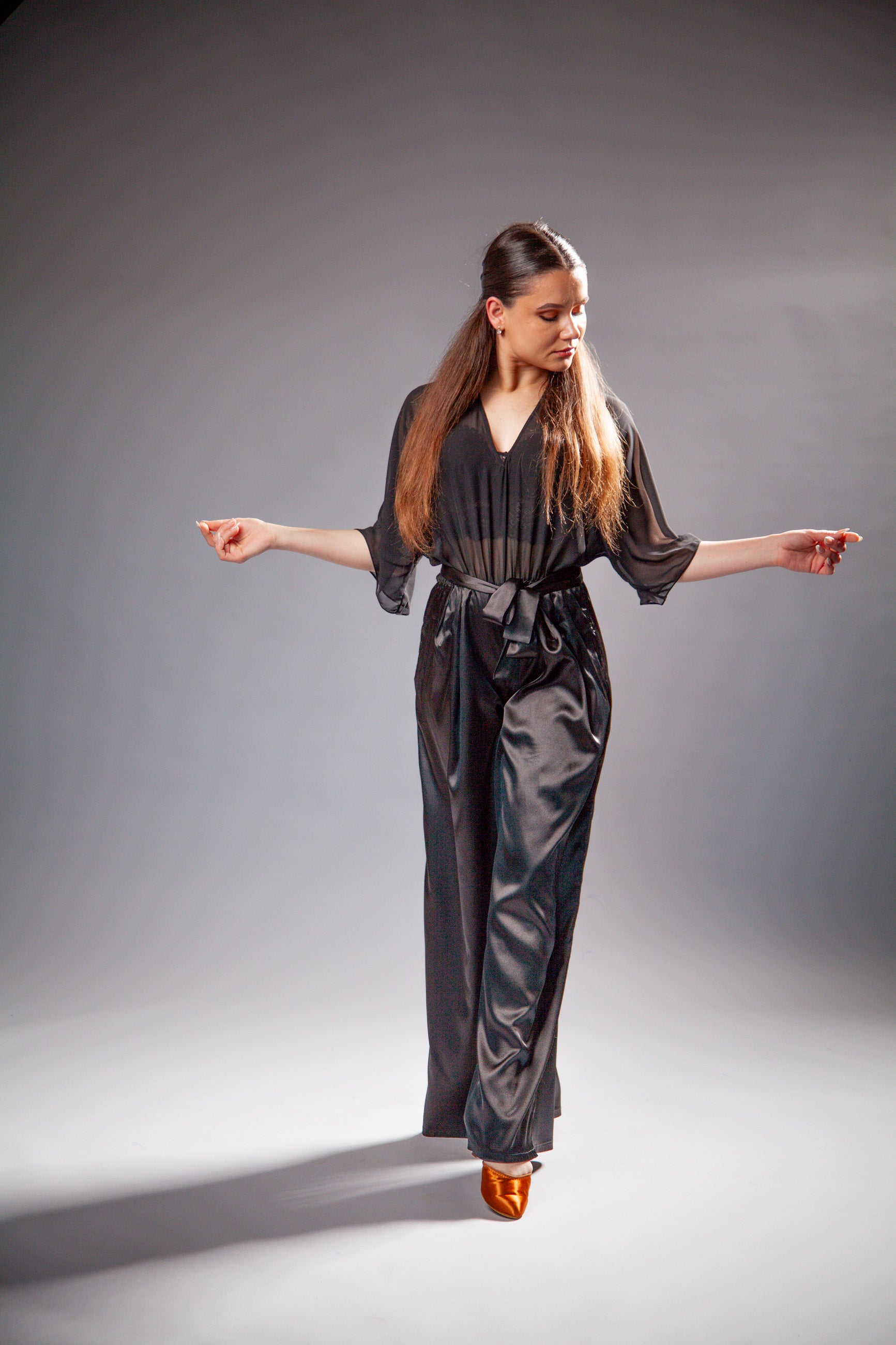 Attractive with it's simplicity in design, yet sophisticated with the glossy-like fabric, this jumpsuit is great not only to serve as practice wear, but also as a competition wear for coaches.