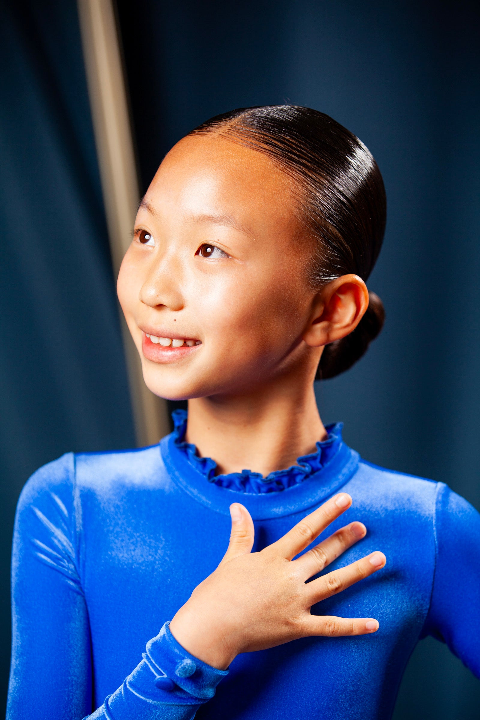 - a leotard with noble stand collar, long sleeves, with buttons running along the back,
