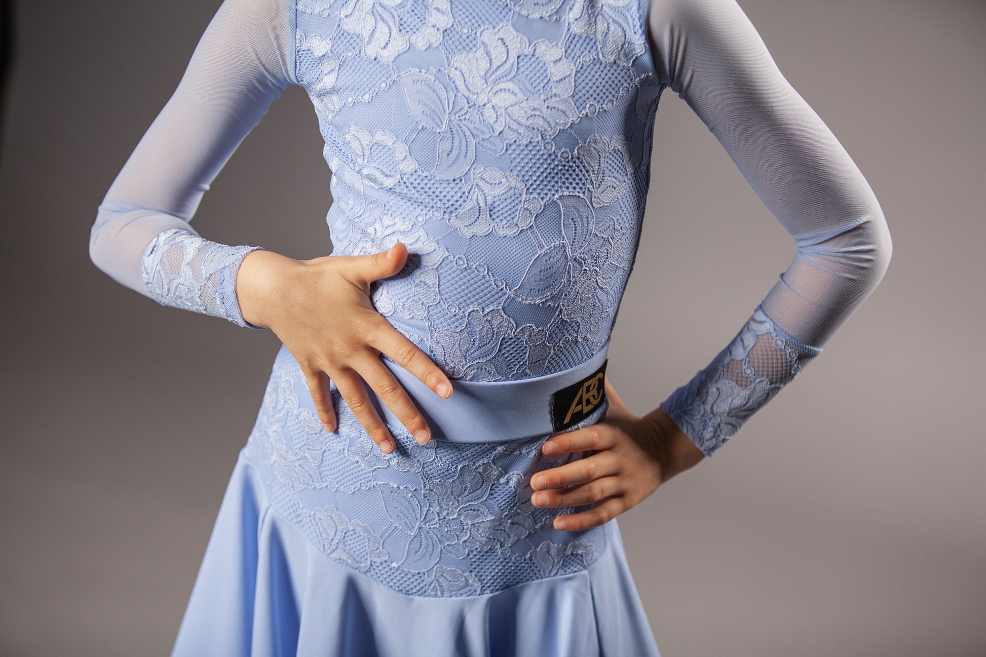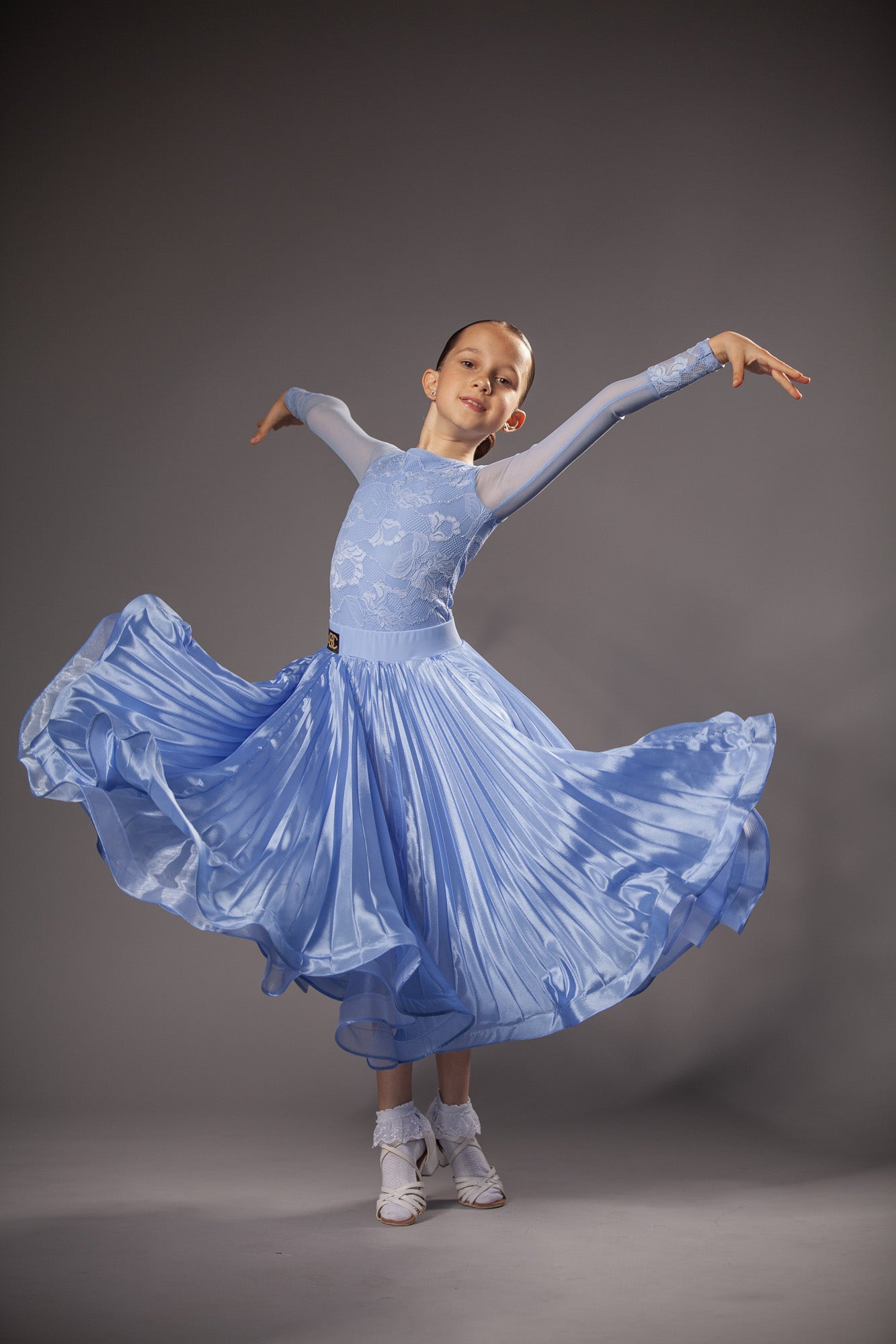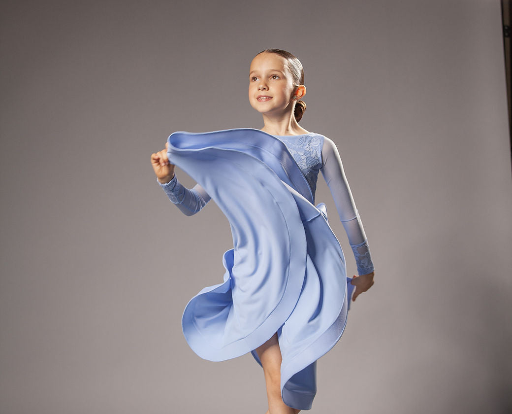 This was our very first dress style that we created. It was intended for the daughter of the co-owner - Emily. She was 9 years old at that time and had been in ballroom dancing for 2 years. She was the one who inspired the whole idea of establishing a company that would offer premium exclusive dresses for ballroom and latin dance in the US market.