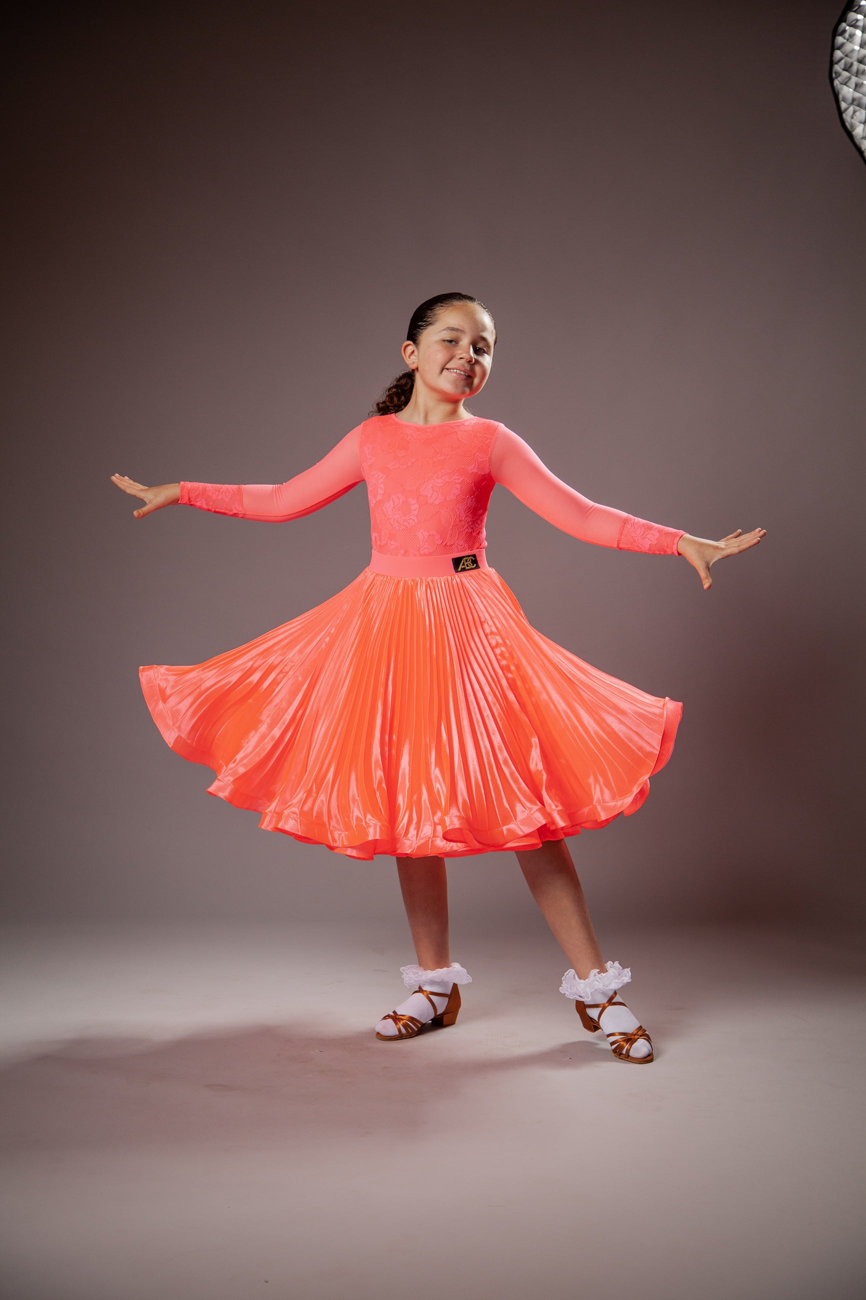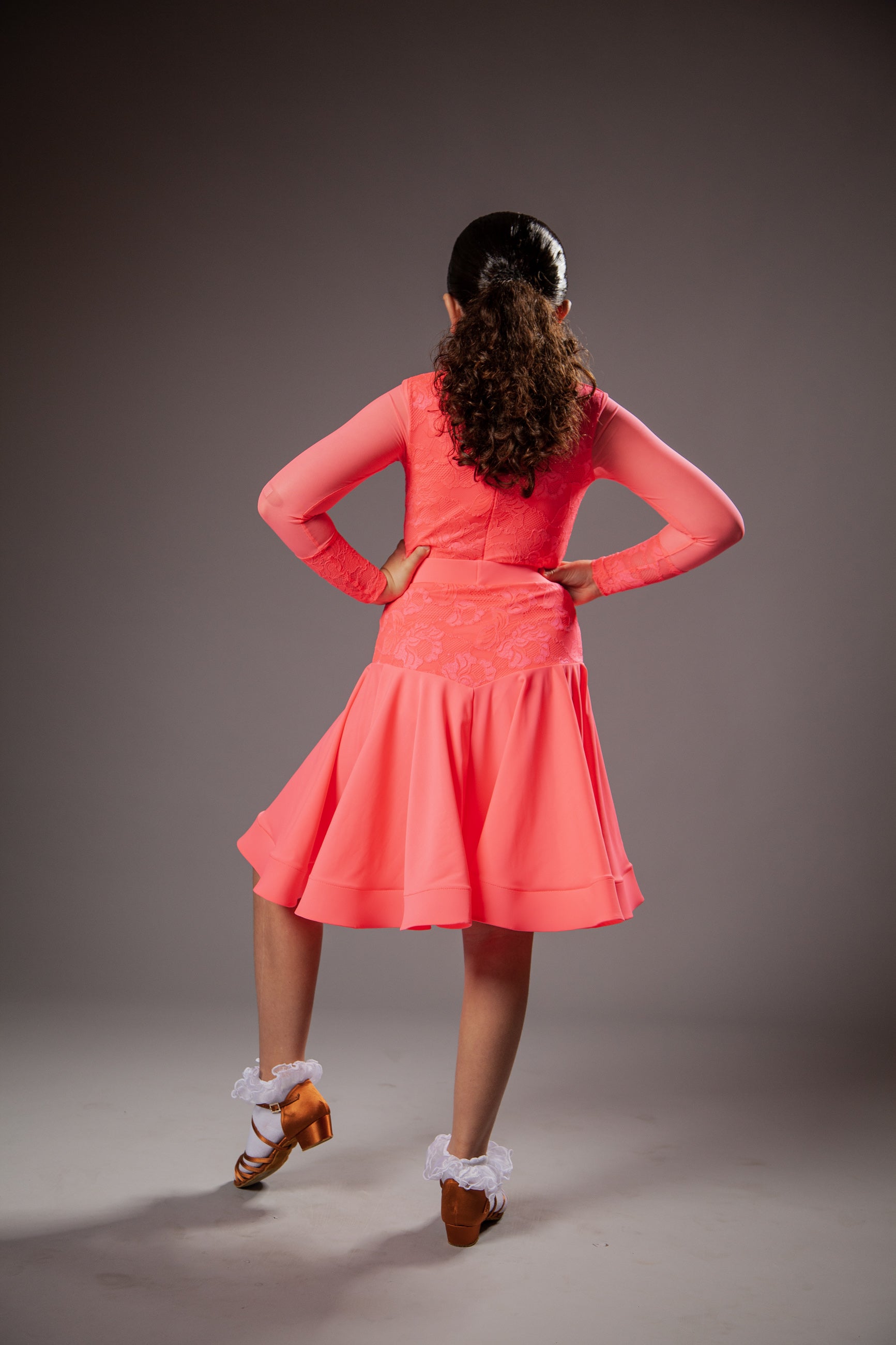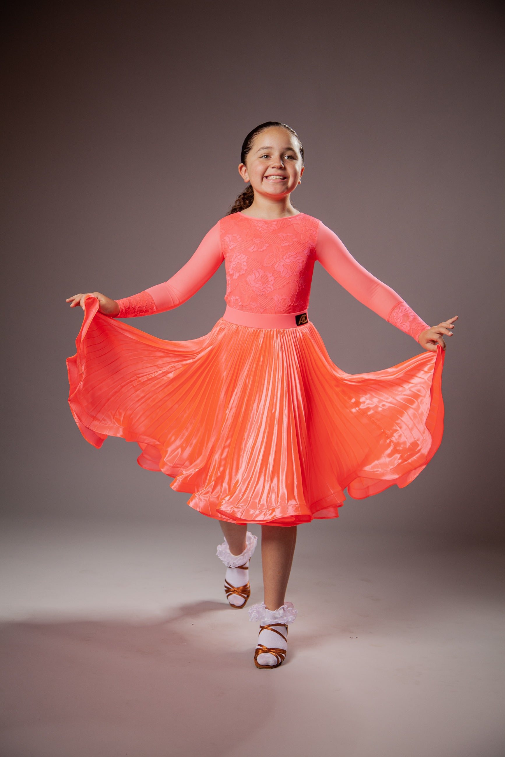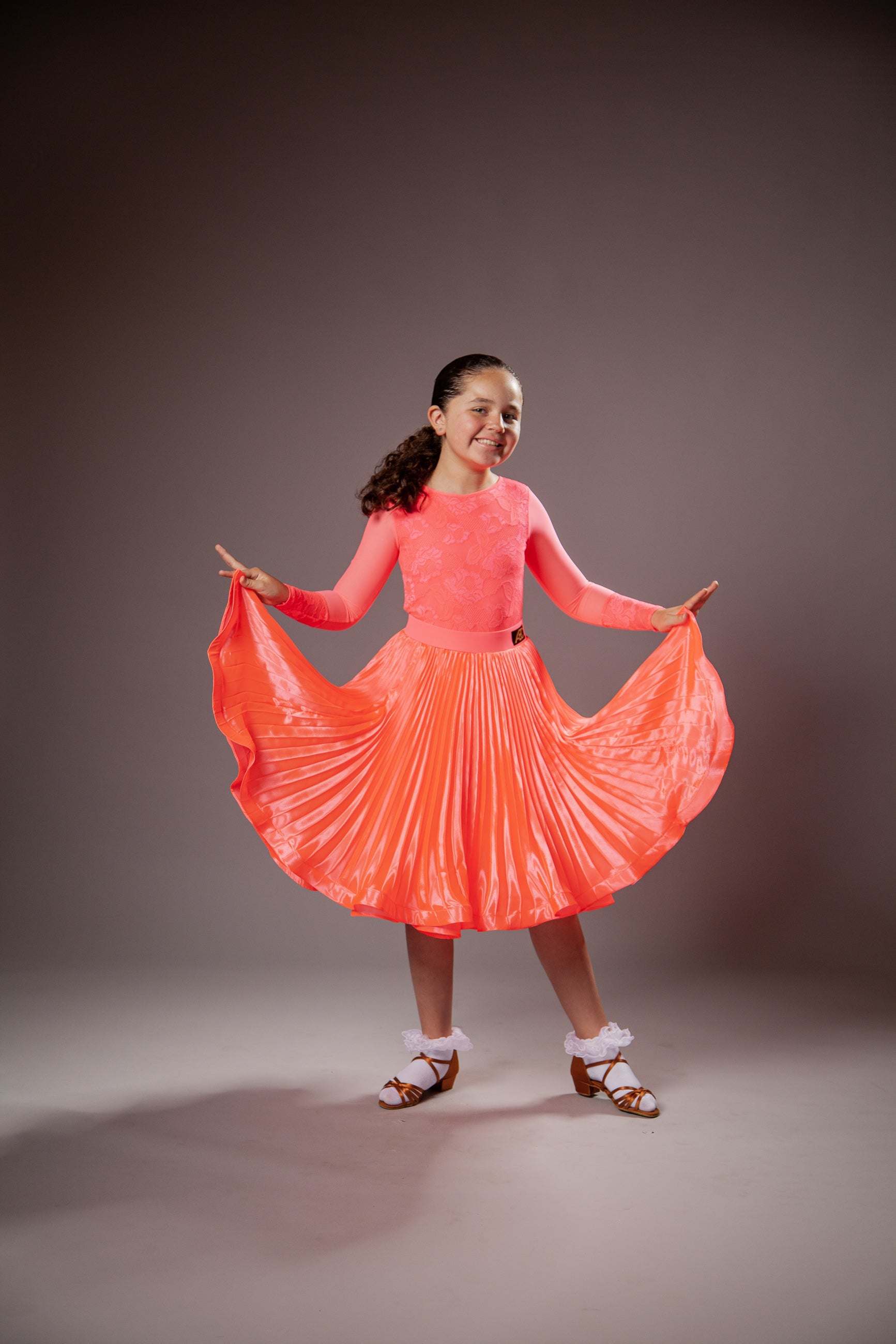This was our very first dress style that we created. It was intended for the daughter of the co-owner - Emily. She was 9 years old at that time and had been in ballroom dancing for 2 years. She was the one who inspired the whole idea of establishing a company that would offer premium exclusive dresses for ballroom and latin dance in the US market.