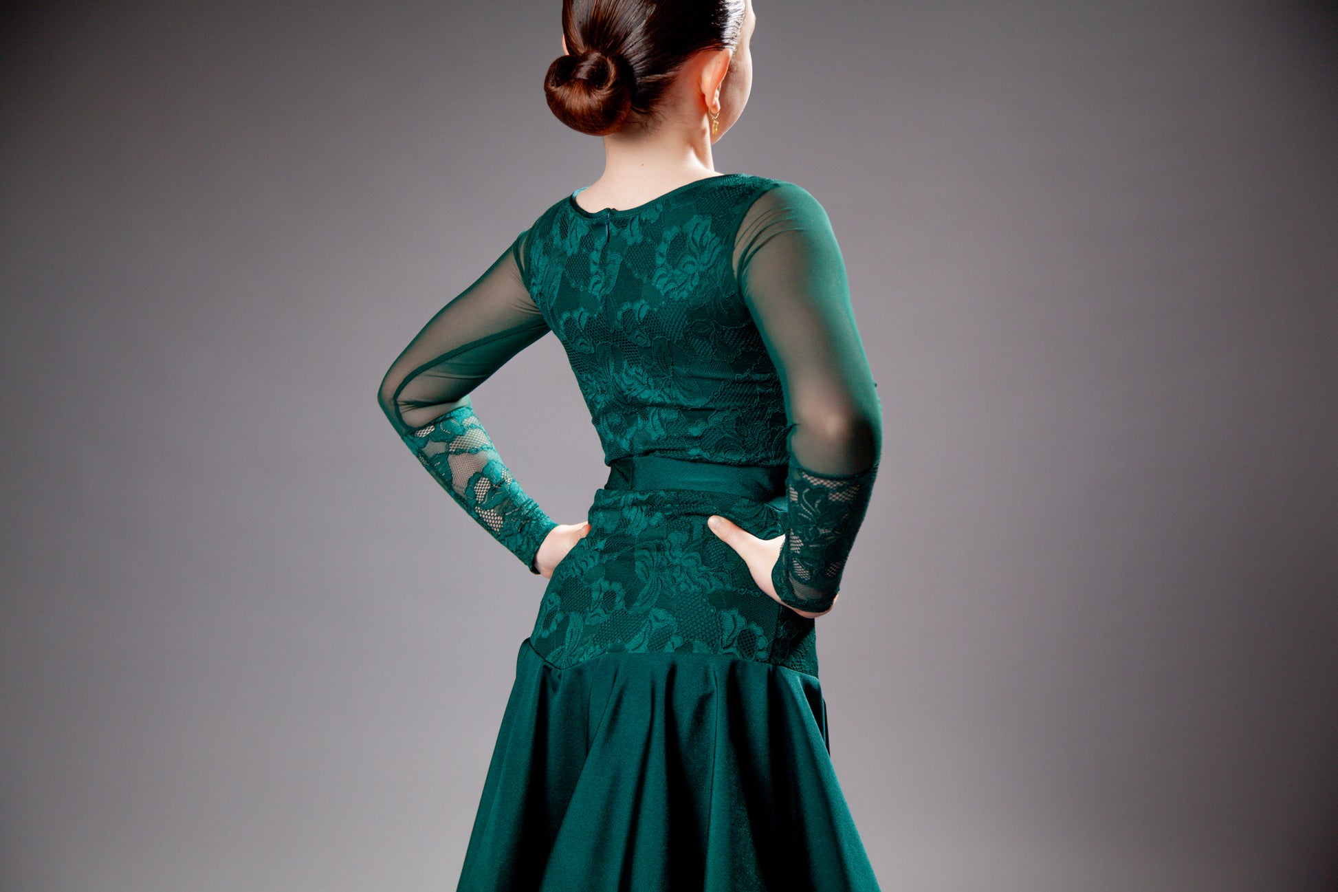 We needed something very elegant, chic and luxurious. Something that would become our signature dress style. And without any hesitations this design was created. Luxurious leotard with lace and net sleeves. Ballroom skirt made of unique gofre fabric - something that only highly skilled tailors could make. That's how this dress was born and got its name.