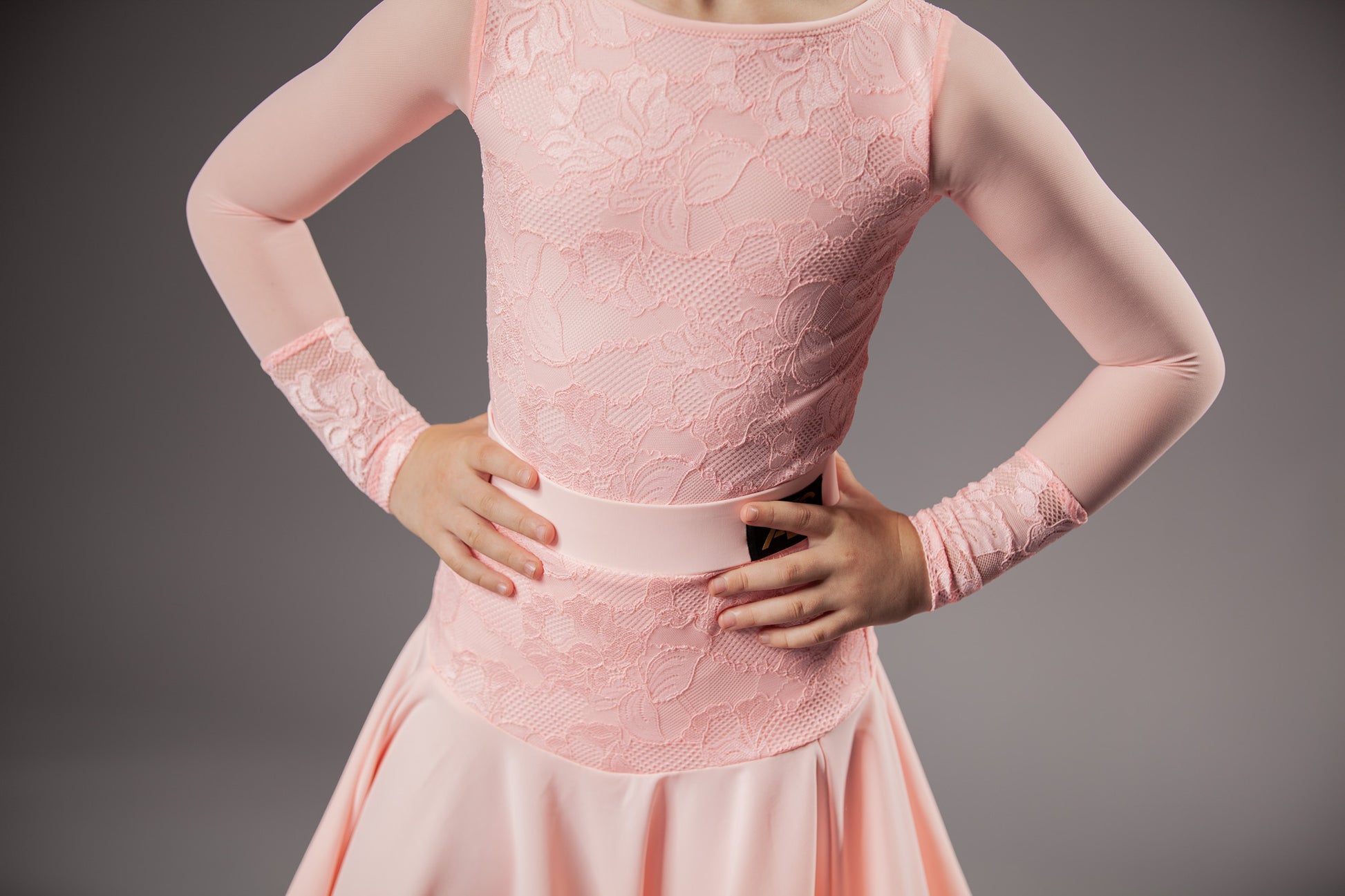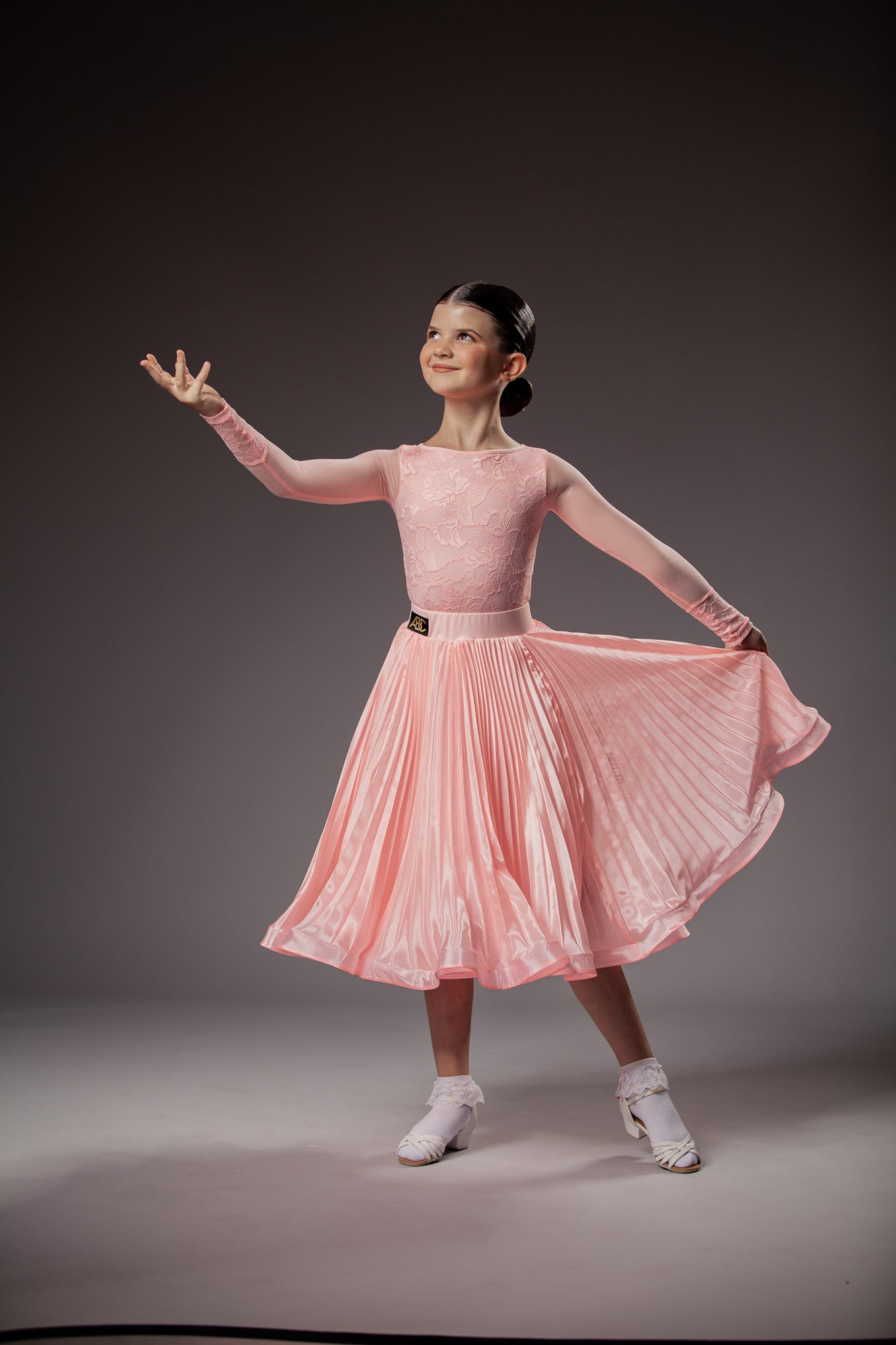This was our very first dress style that we created. It was intended for the daughter of the co-owner - Emily. She was 9 years old at that time and had been in ballroom dancing for 2 years. She was the one who inspired the whole idea of establishing a company that would offer premium exclusive dresses for ballroom and latin dance in the US market.