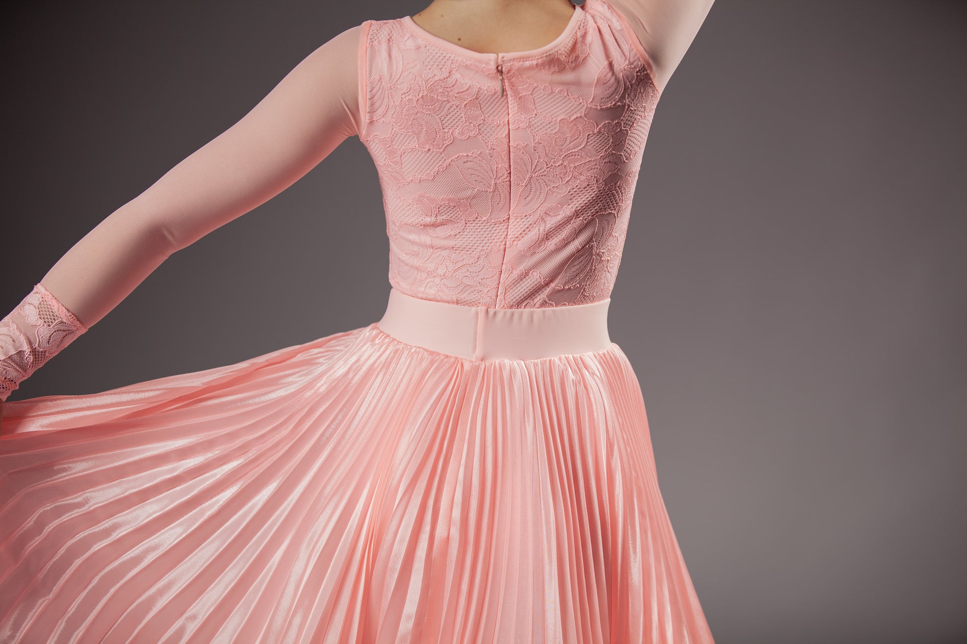 - pleated skirt for ballroom dance with hidden crinoline hem, and organza underskirt that adds volume and flying effect to the skirt