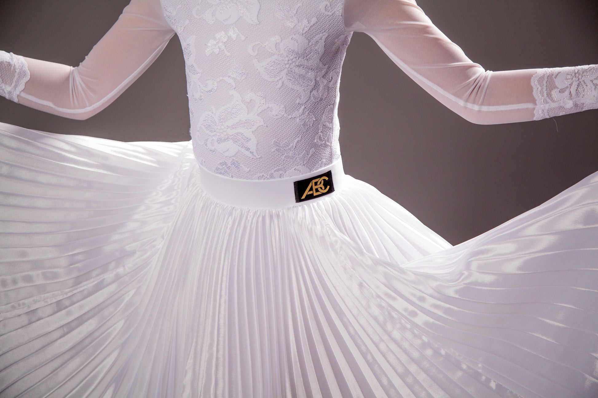 We needed something very elegant, chic and luxurious. Something that would become our signature dress style. And without any hesitations this design was created. Luxurious leotard with lace and net sleeves. Ballroom skirt made of unique gofre fabric - something that only highly skilled tailors could make. That's how this dress was born and got its name.