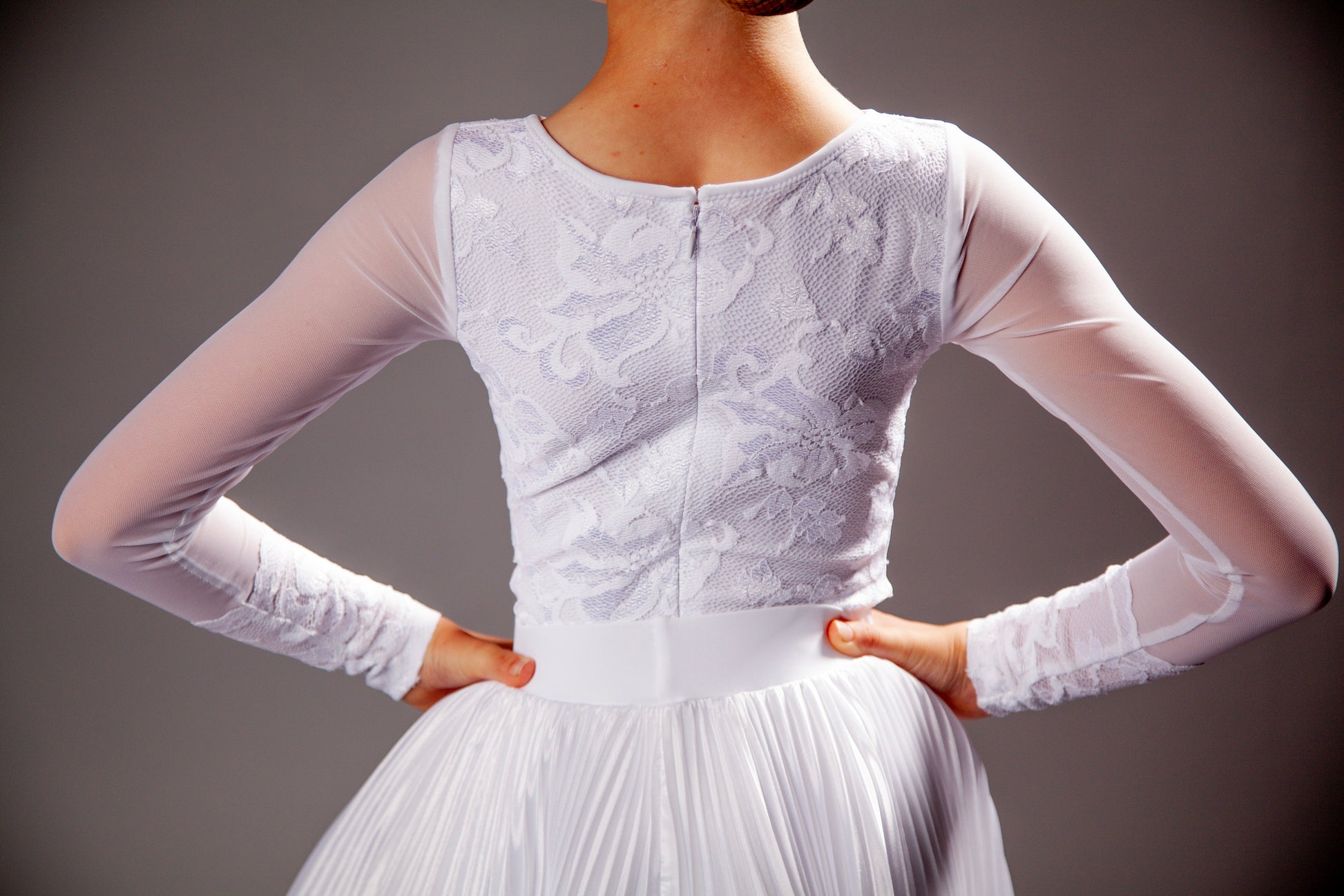 - lace leotard with long net sleeves, finished by the lace cuffs