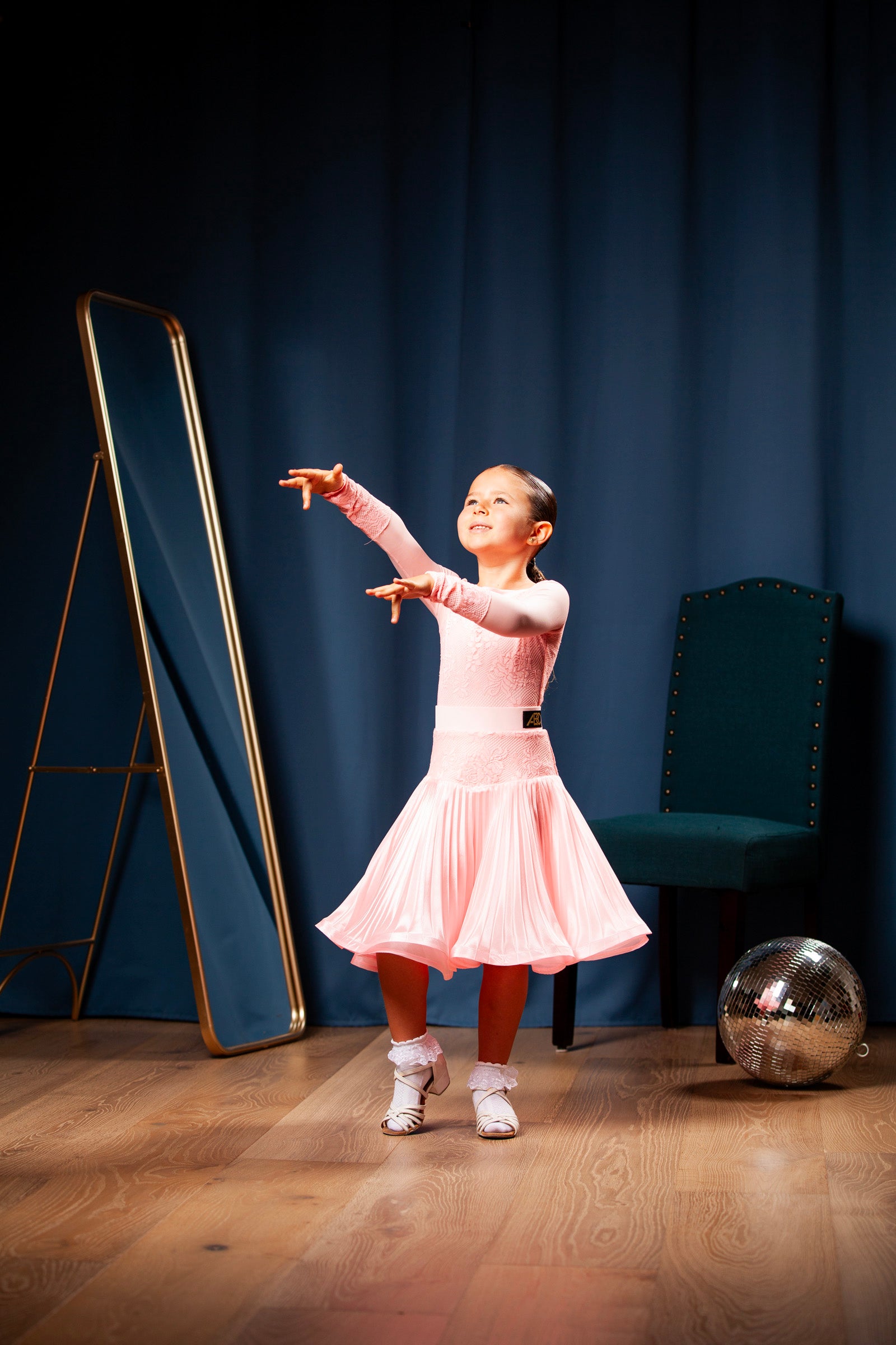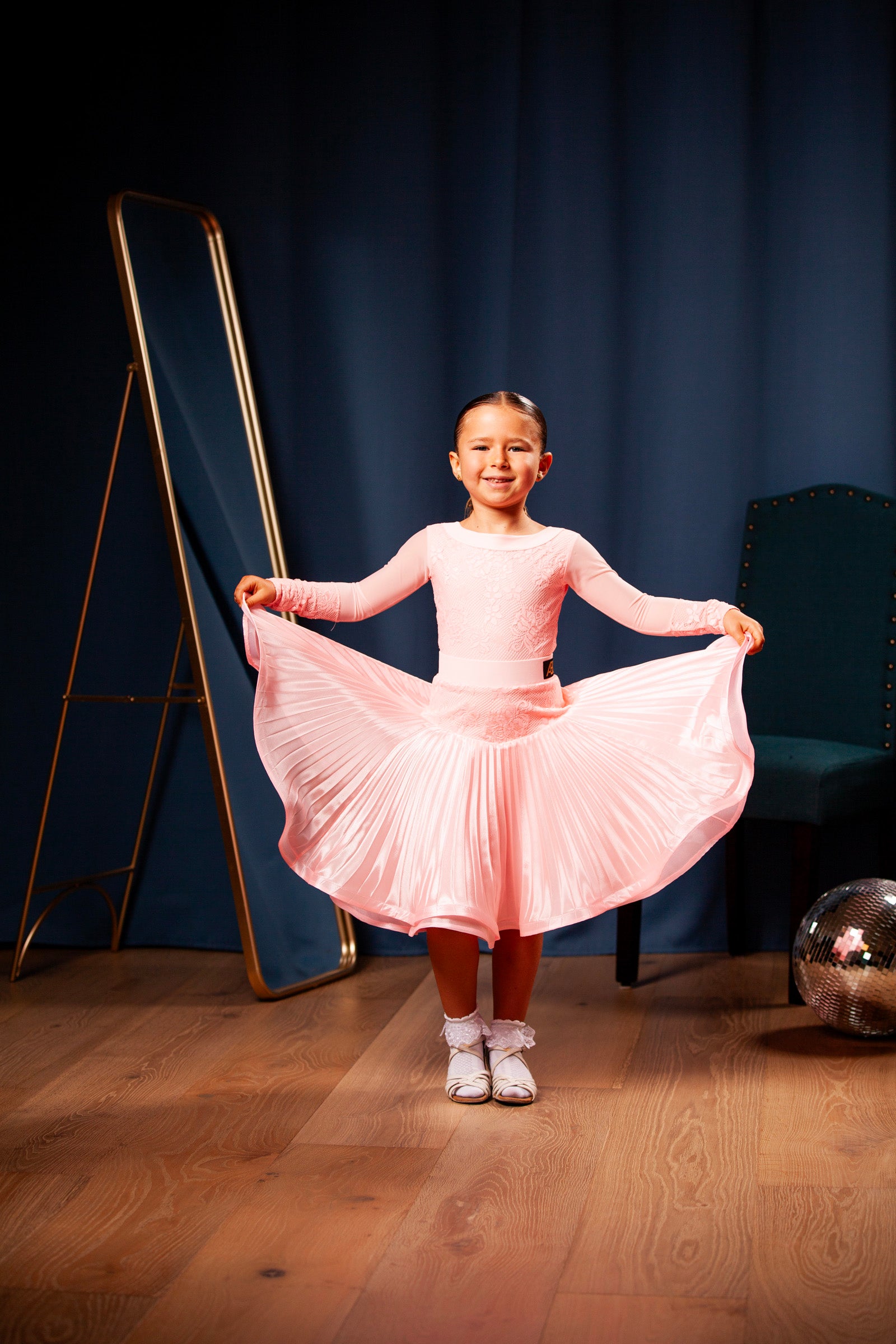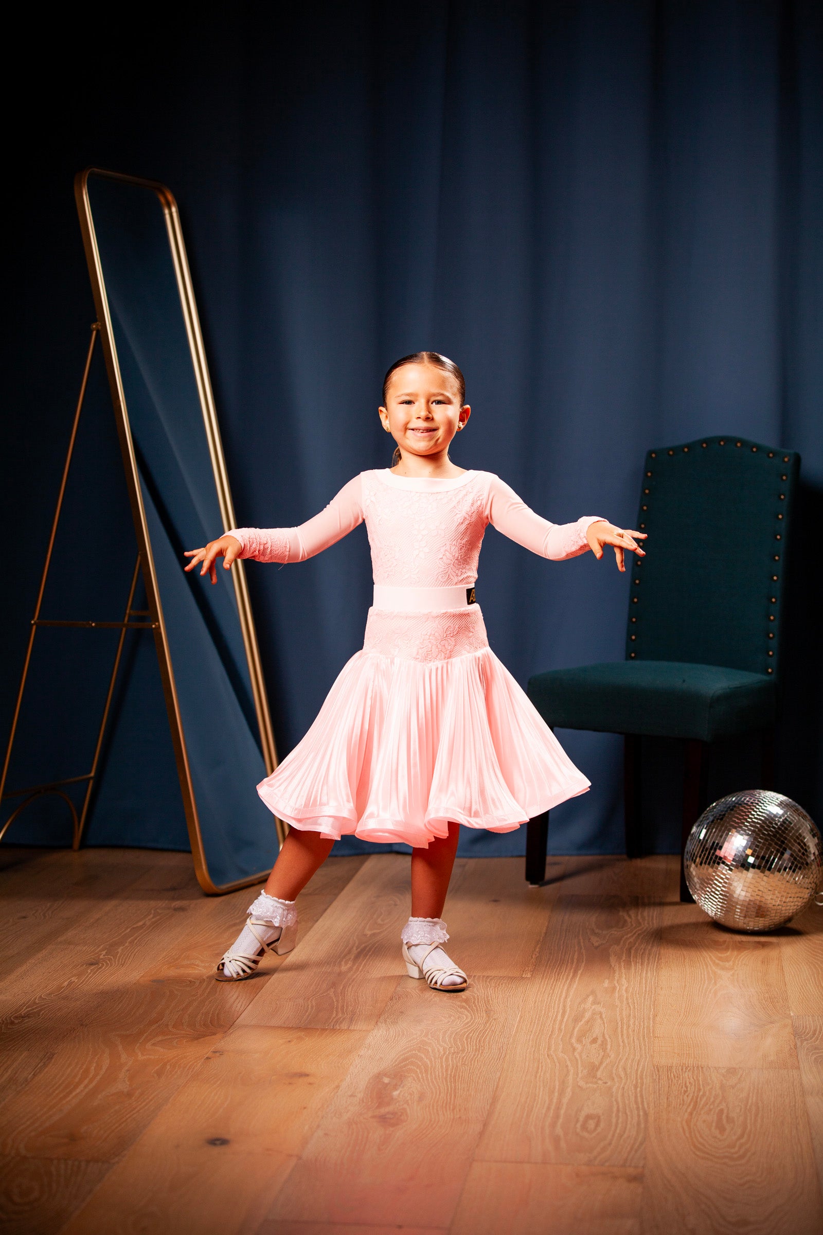 One of our best and cutest dresses! It comes with the skirt for standard/ballroom dance.