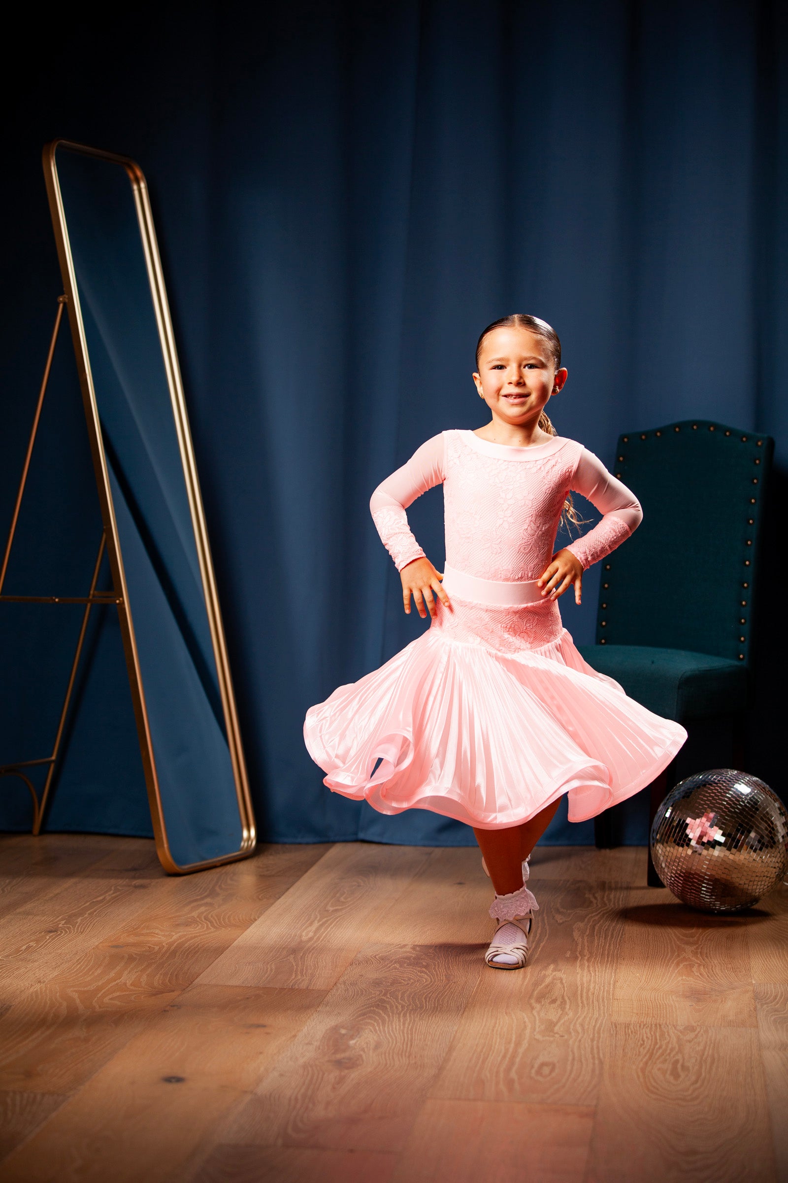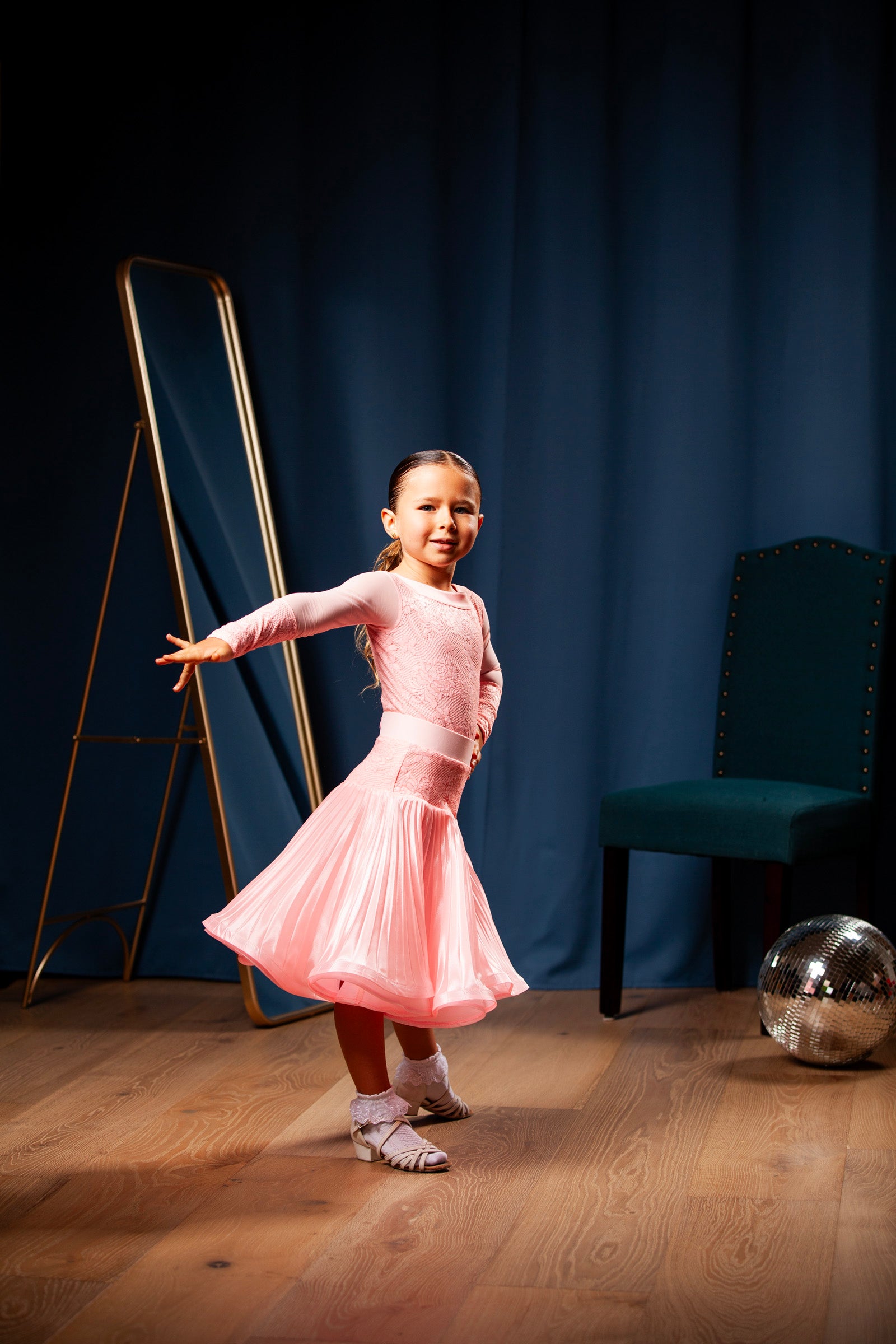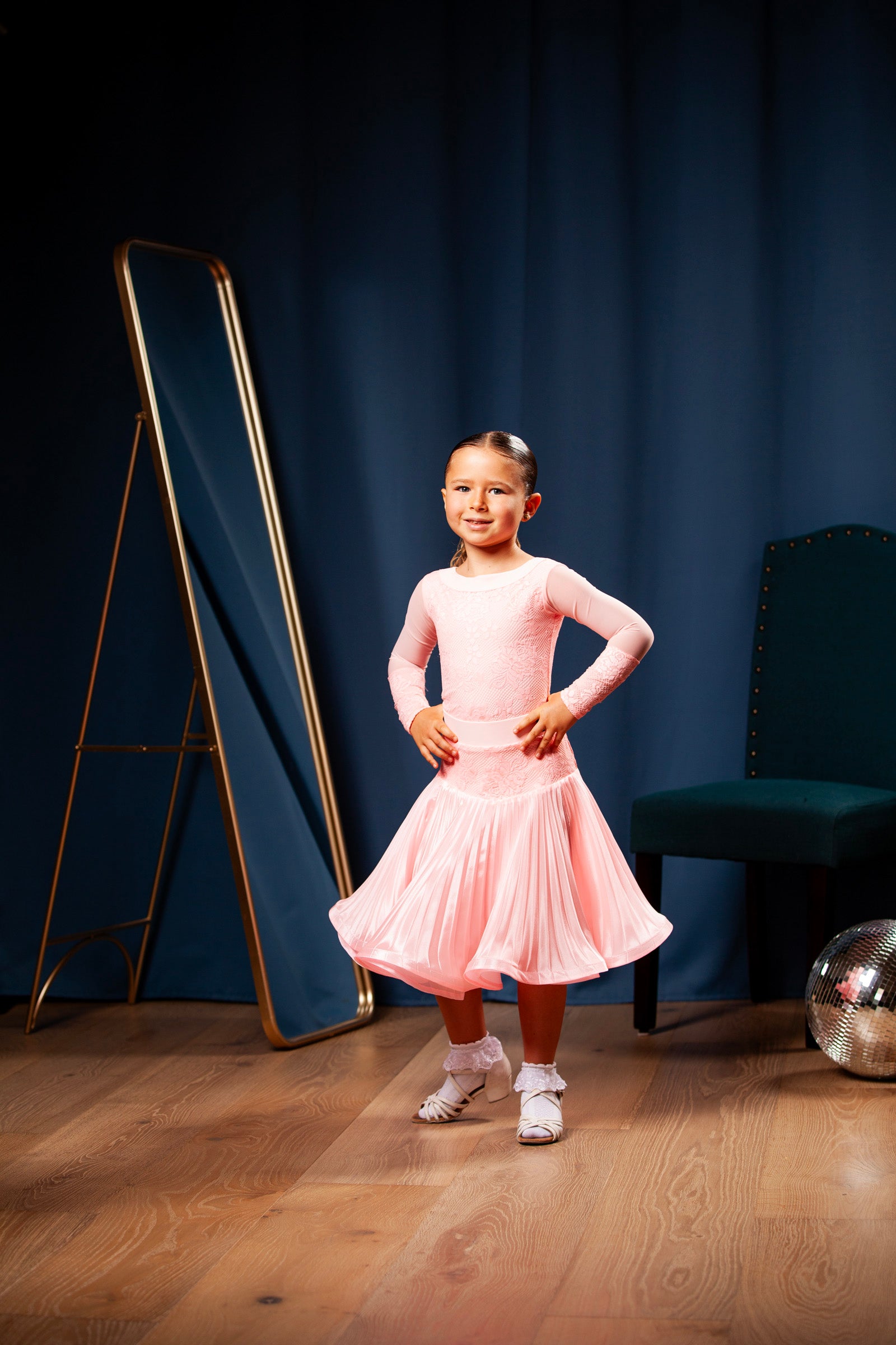 One of our best and cutest dresses! It comes with the skirt for standard/ballroom dance.