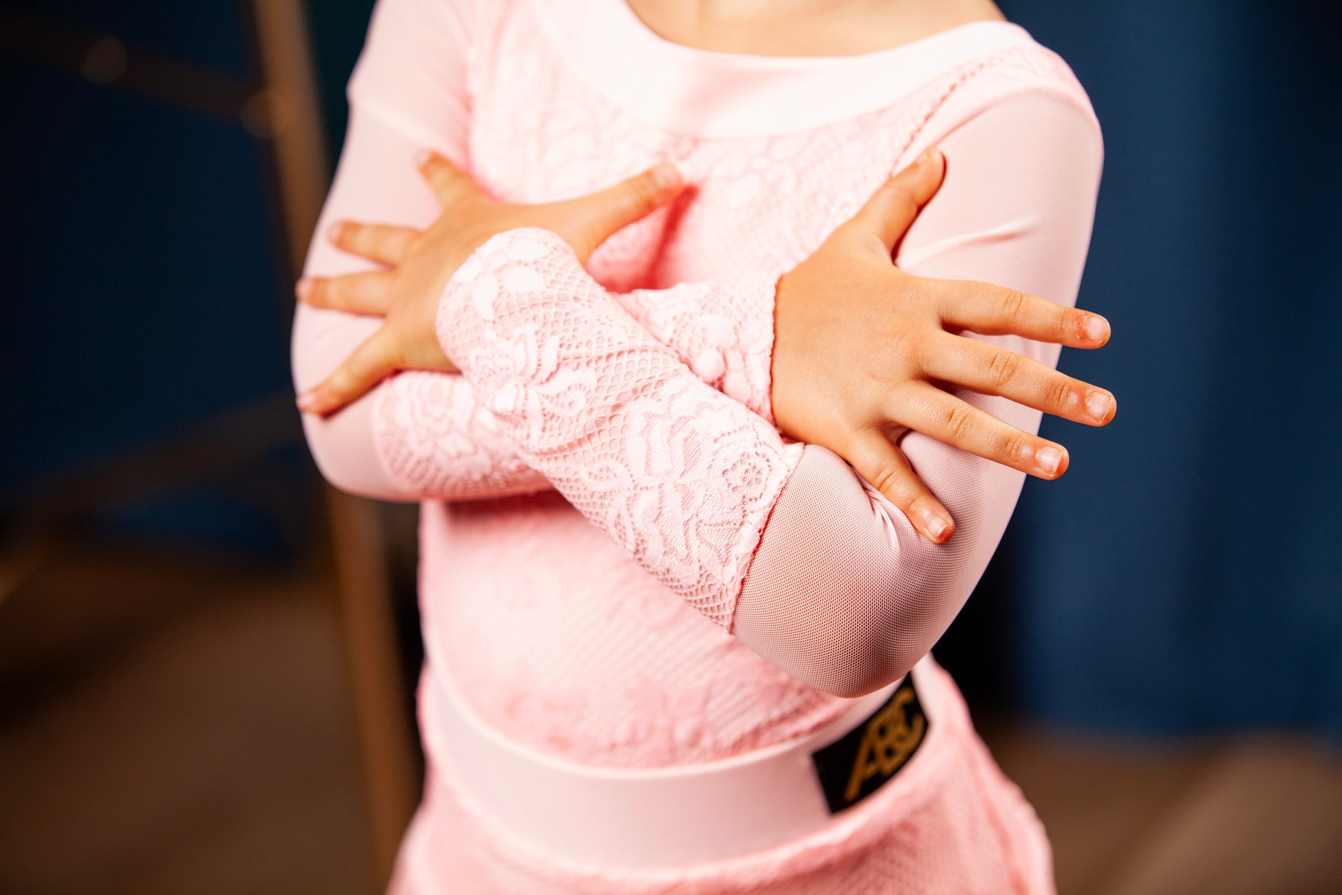 - lace leotard with long net sleeves, finished with the lace cuffs