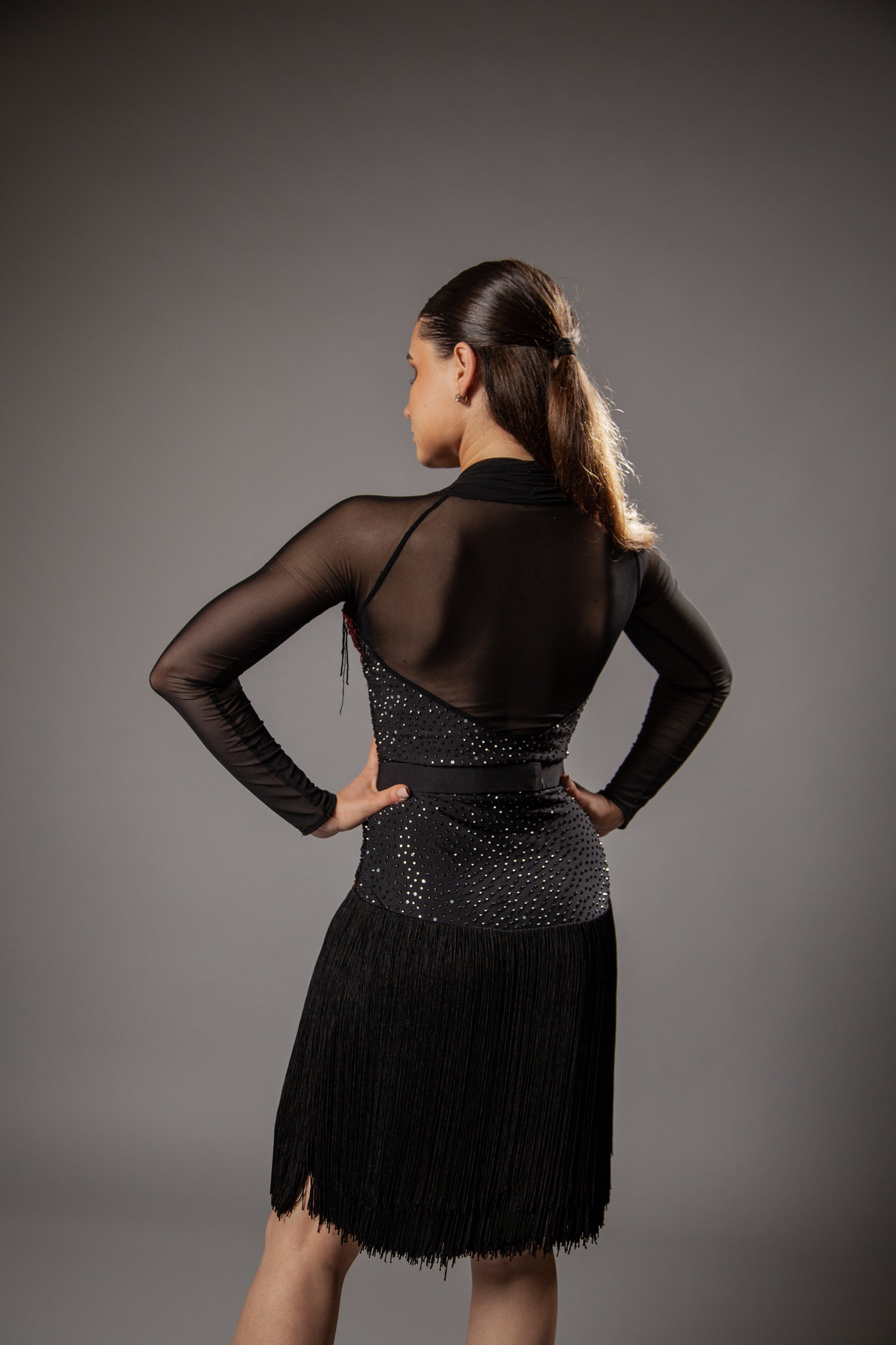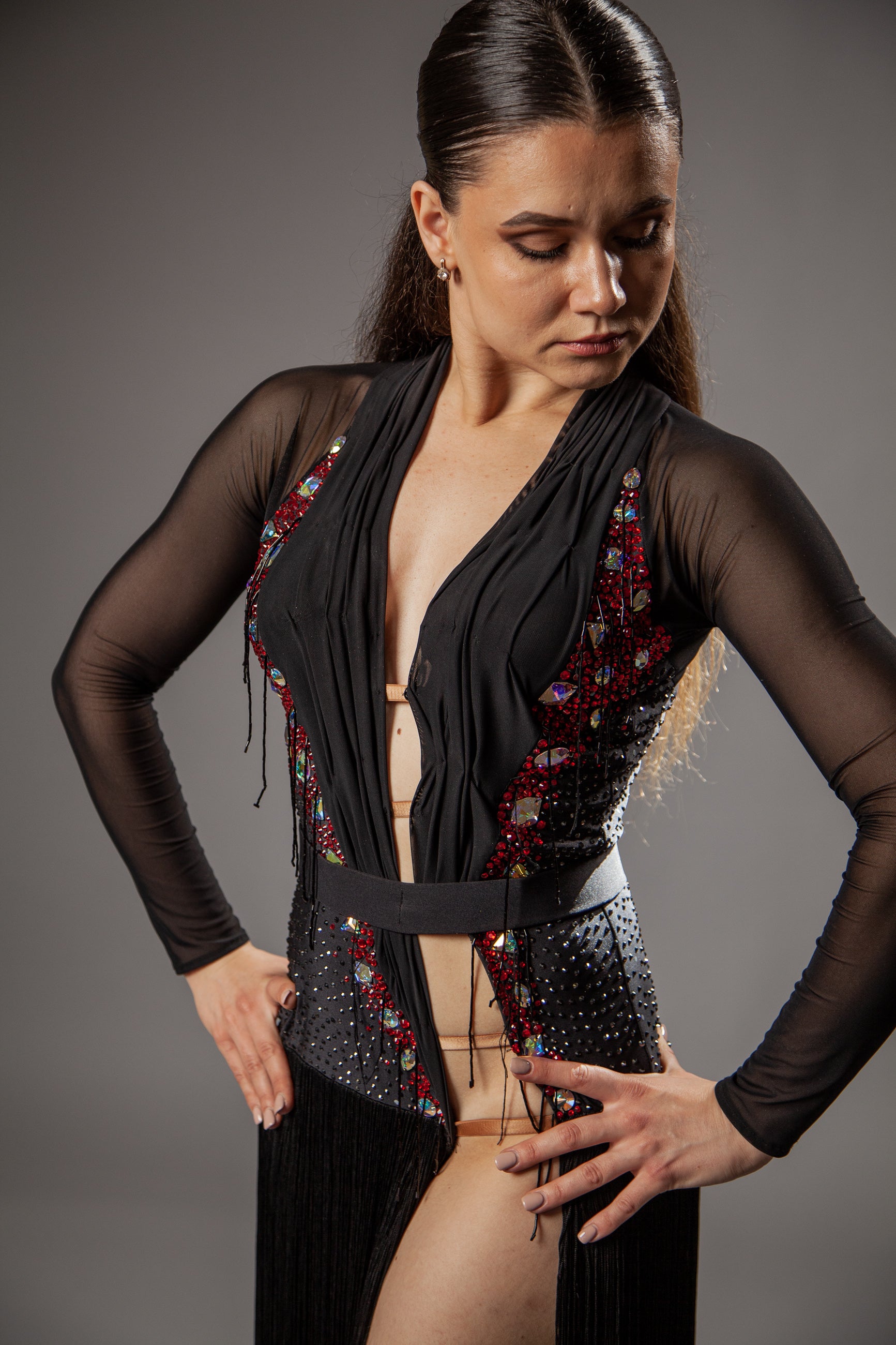 RENT ME: Black with red&silver rhinestones latin dress in size S